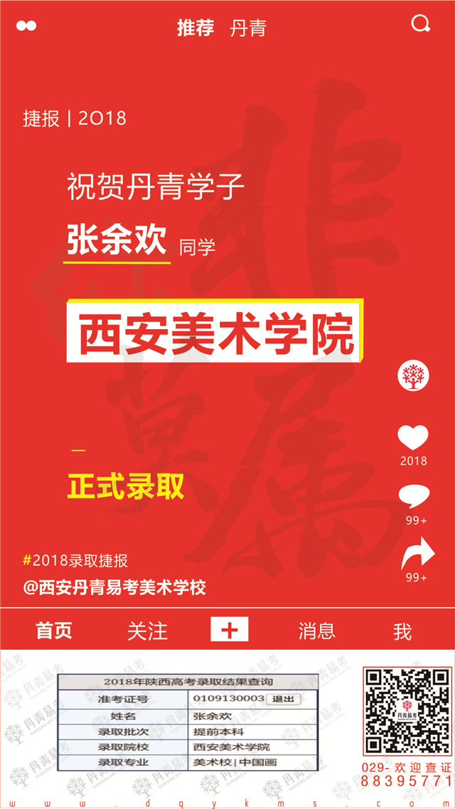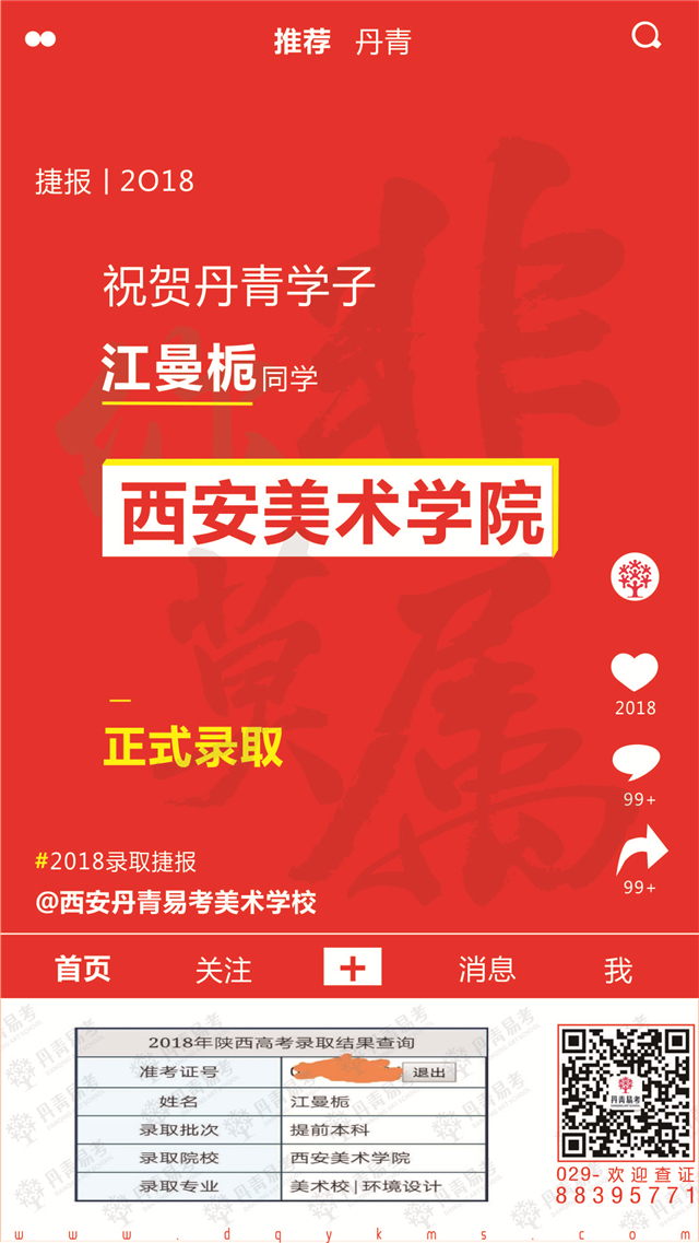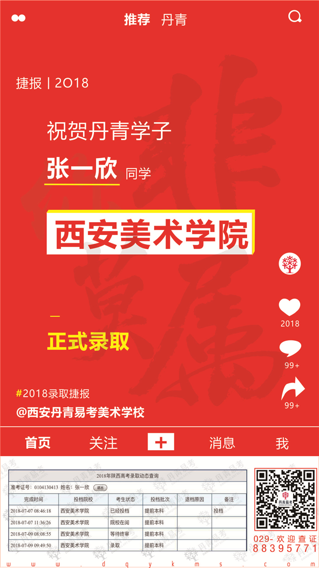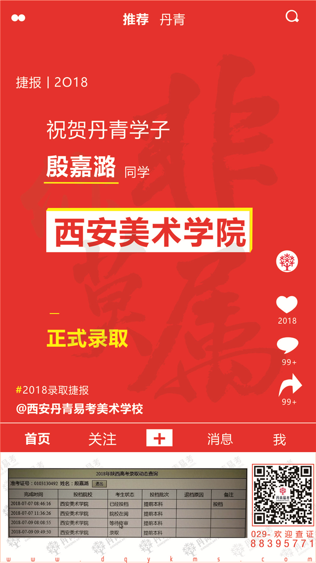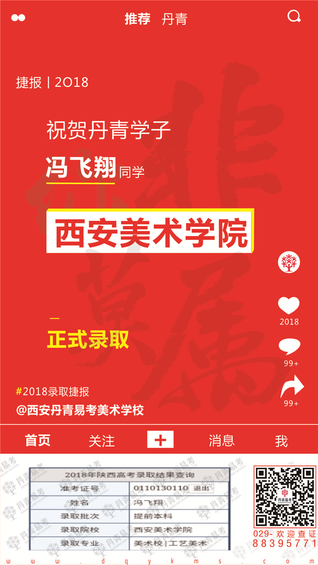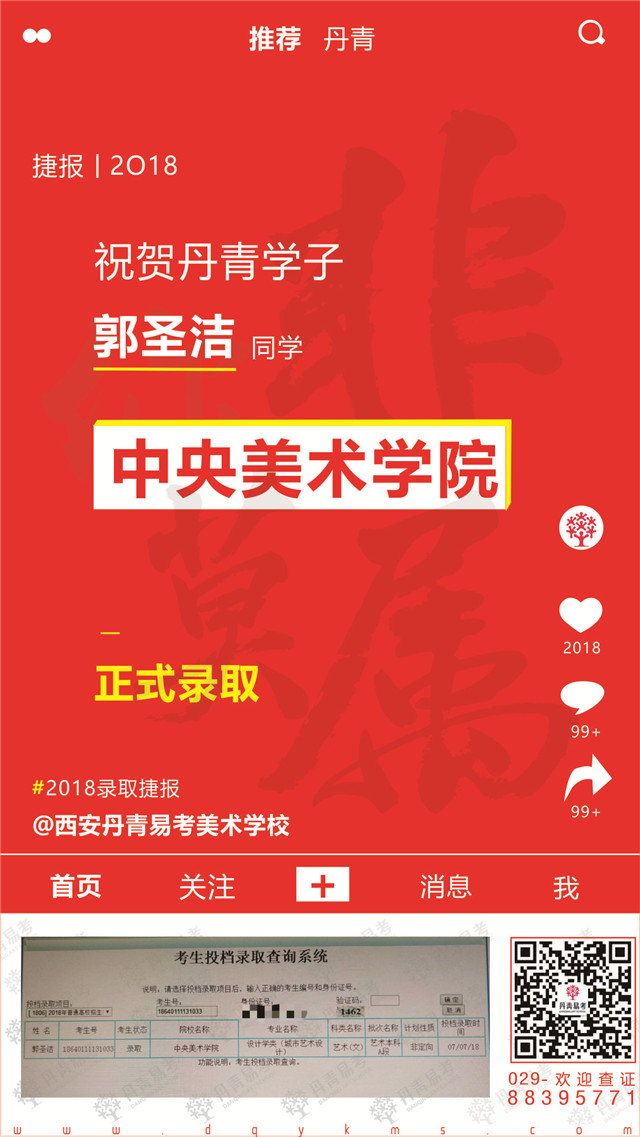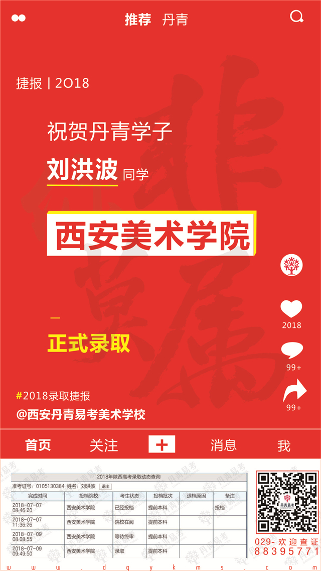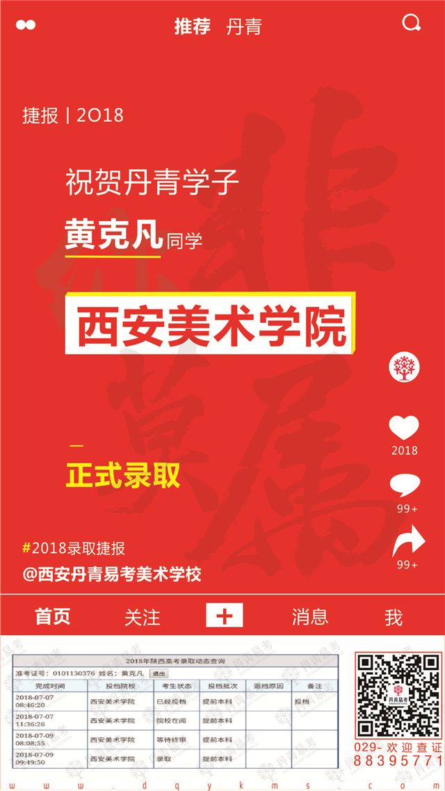 现在的美术培训行业较为混乱,出现有些画室ps学生成绩、录取截图的现象,扰乱美术培训市场,混淆考生及家长的判断。丹青易考作为西北美术教育的品牌机构作出表率,以下所公示录取榜单均真实,有效,若您对我们公示的榜单有异议,欢迎查证!