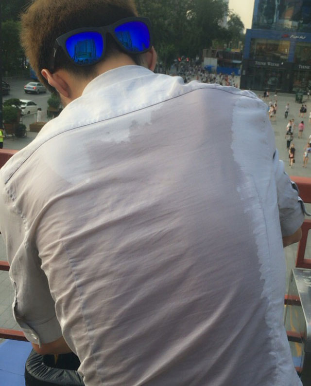 建勋老师的后背已被汗水湿透