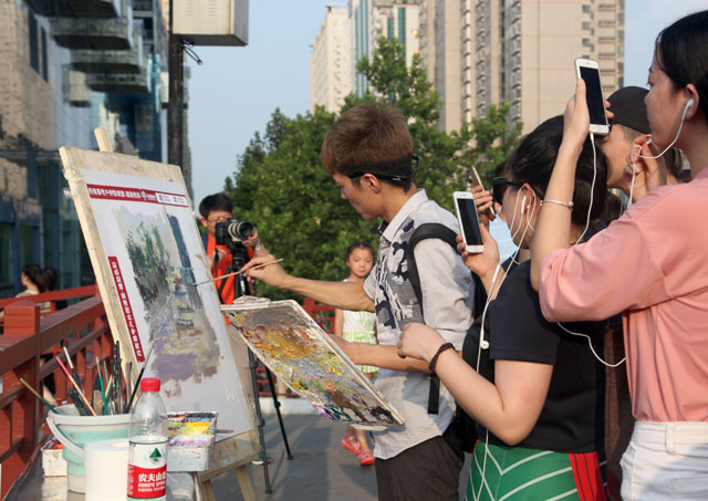 建勋老师在寻找绘画的最佳角度