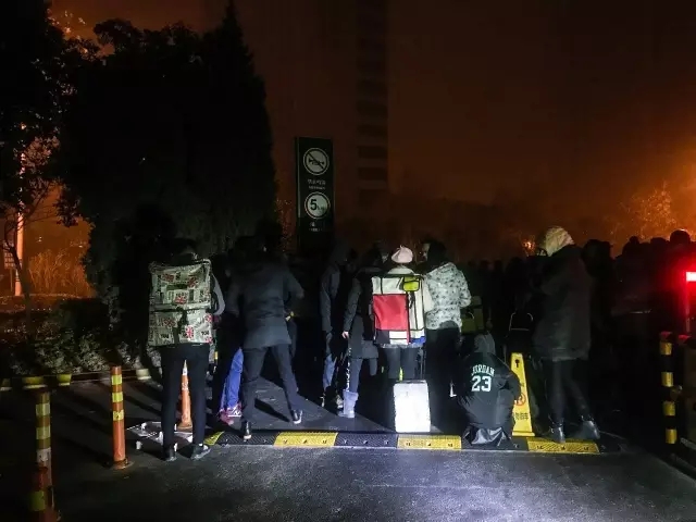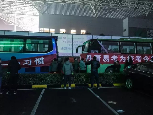 天色未亮艺术生冒雨赶考