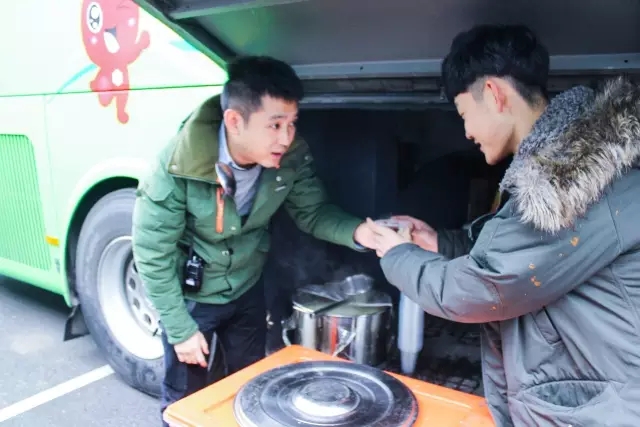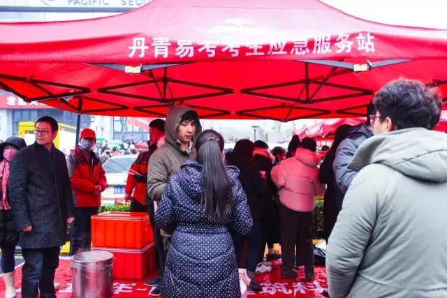 为广大考生做应急服务、提供热矿泉水