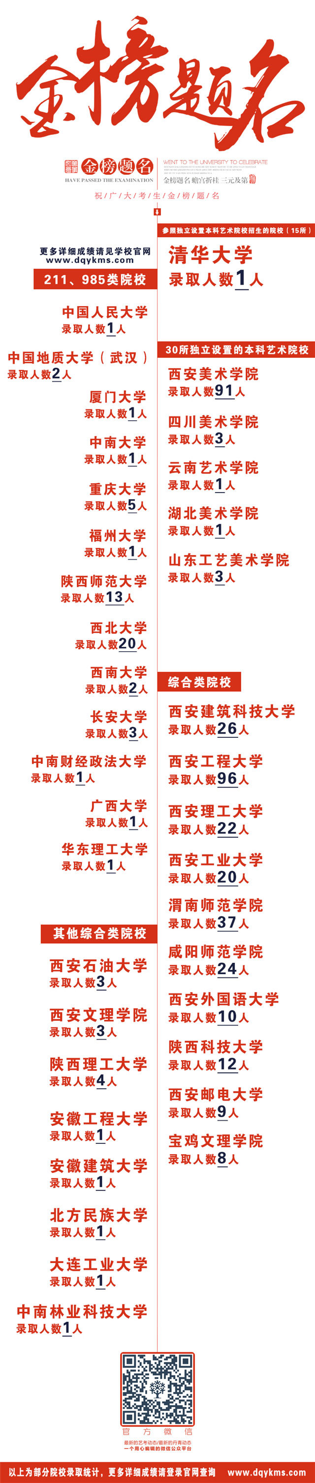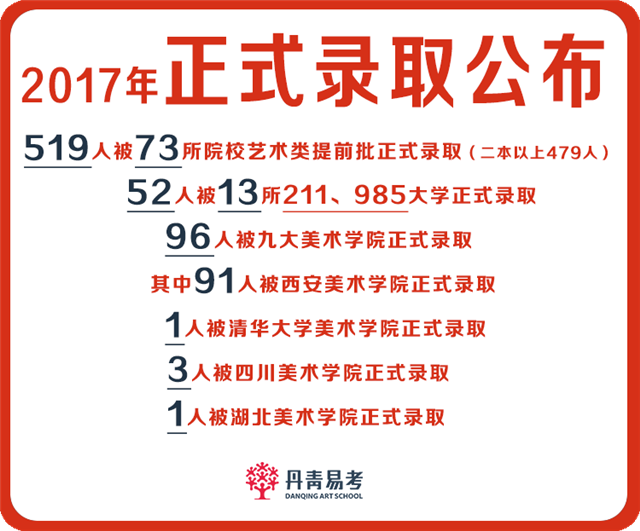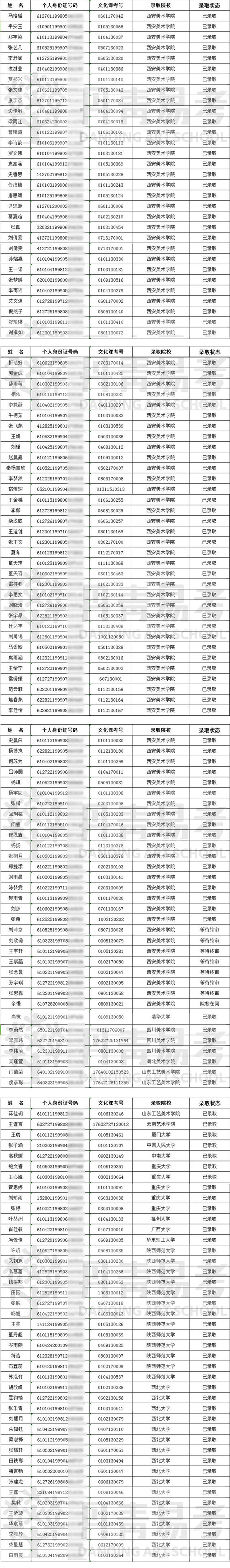 现在的美术培训行业较为混乱,出现有些画室ps学生成绩、录取截图的现象,扰乱美术培训市场,混淆考生及家长的判断。丹青易考作为西北美术教育的品牌机构作出表率,以下所公示录取榜单均真实,有效,若您对我们公示的榜单有异议,欢迎查证!