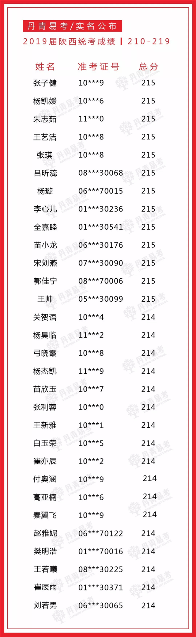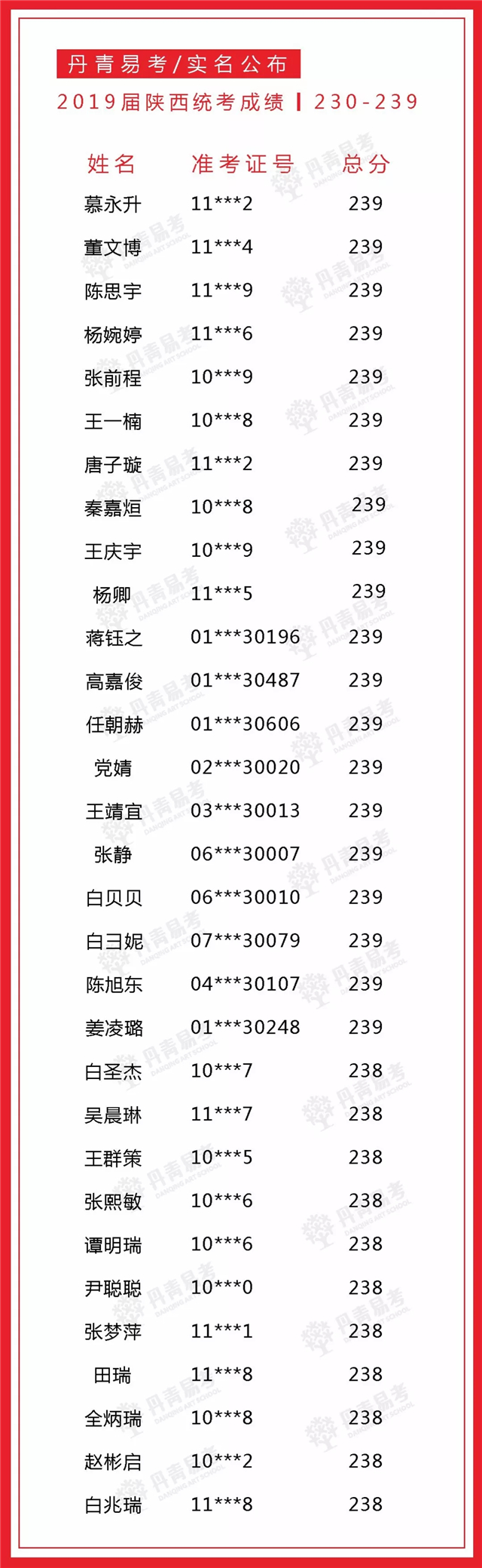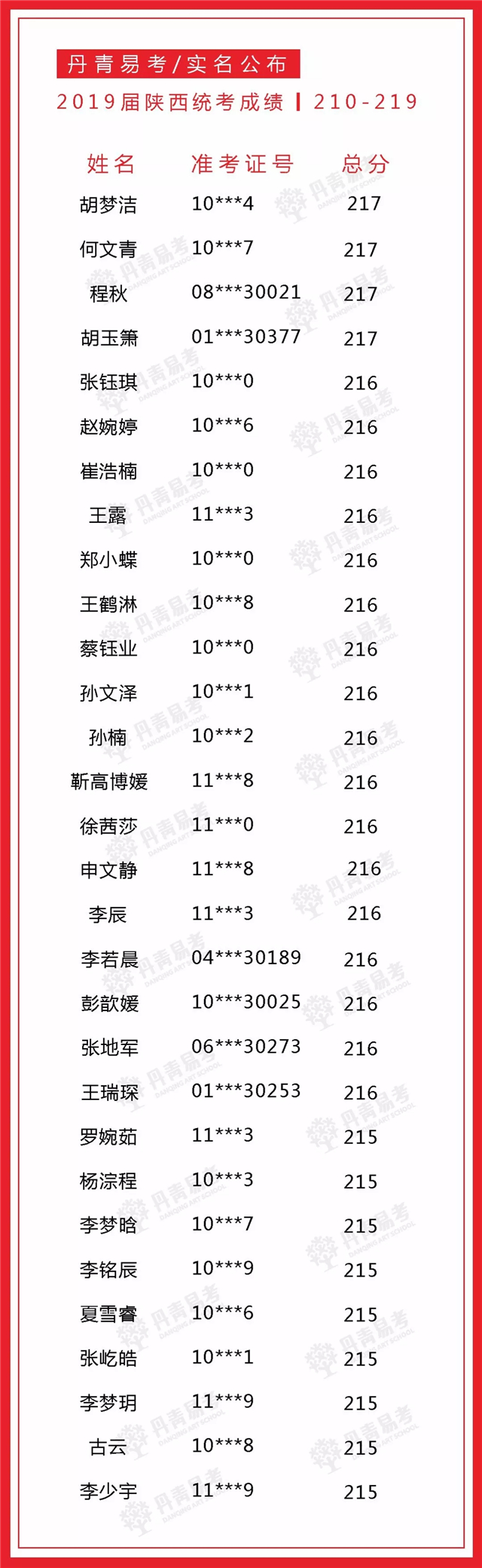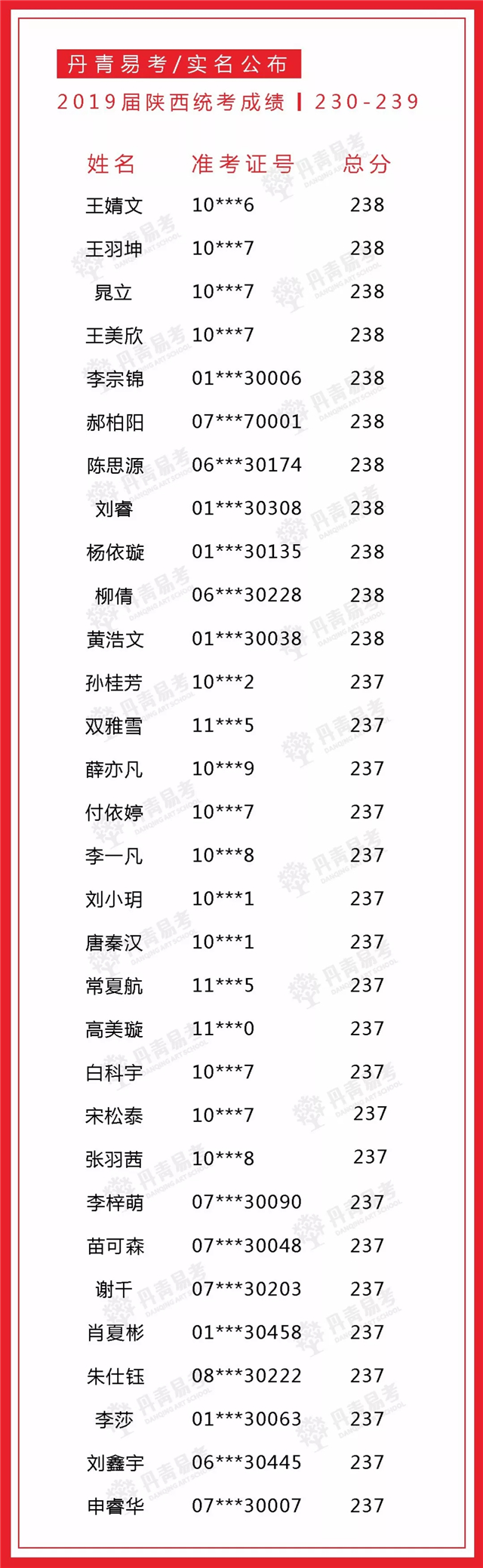 实名公布丹青易考2019届美术统考成绩
