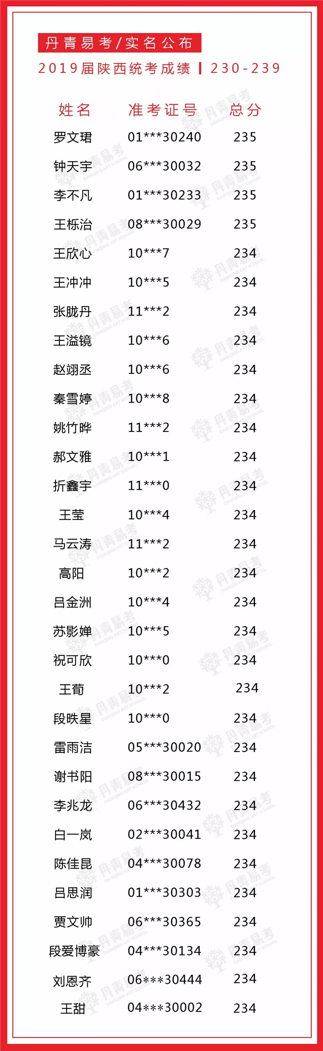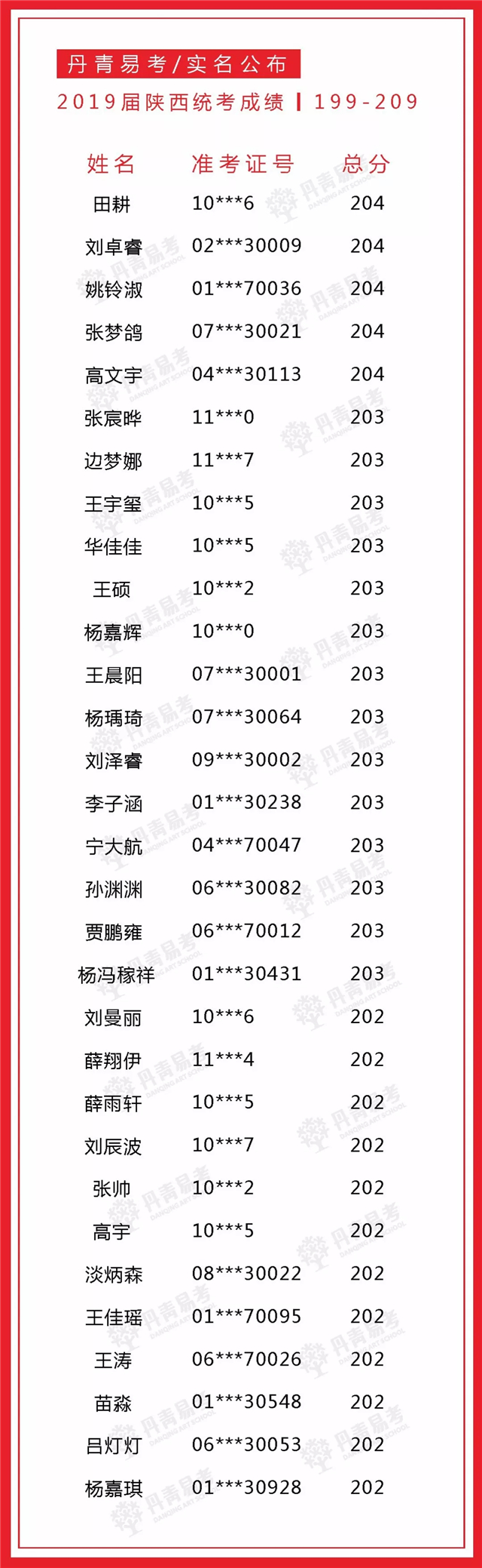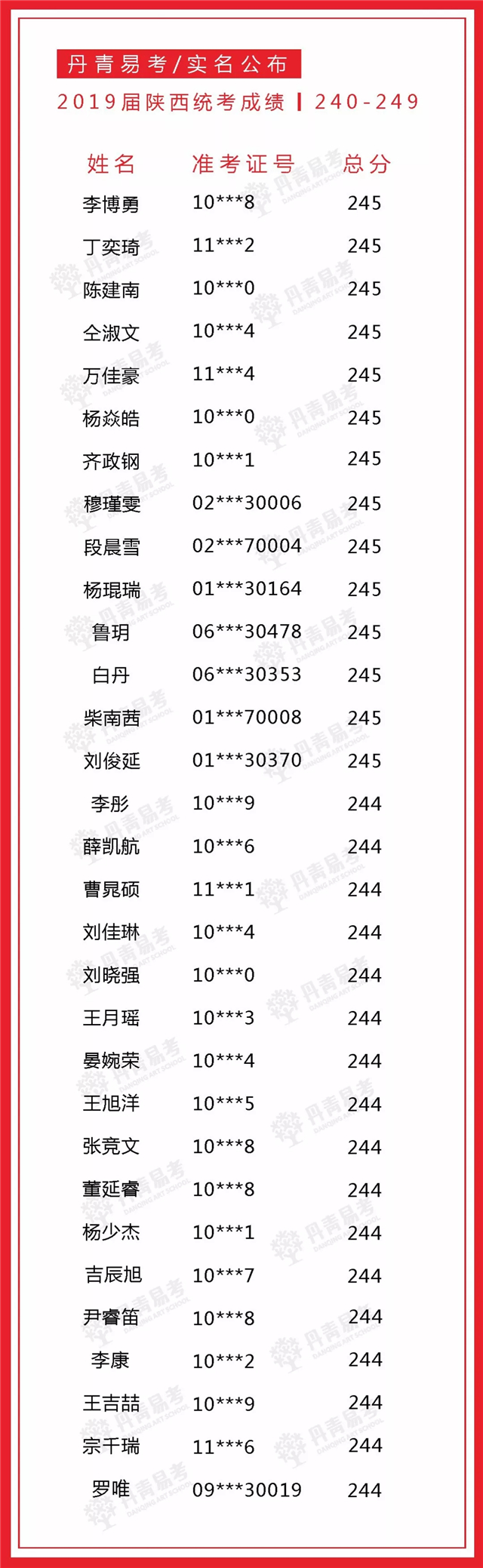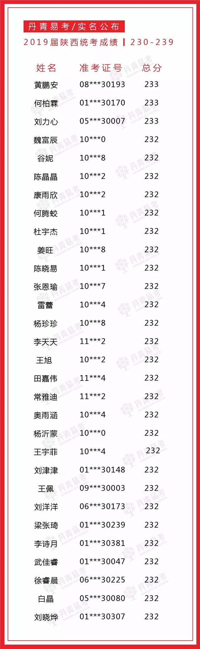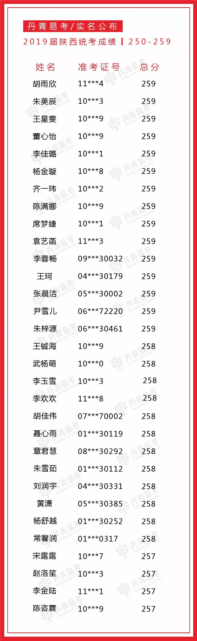 实名公布丹青易考2019届美术统考成绩