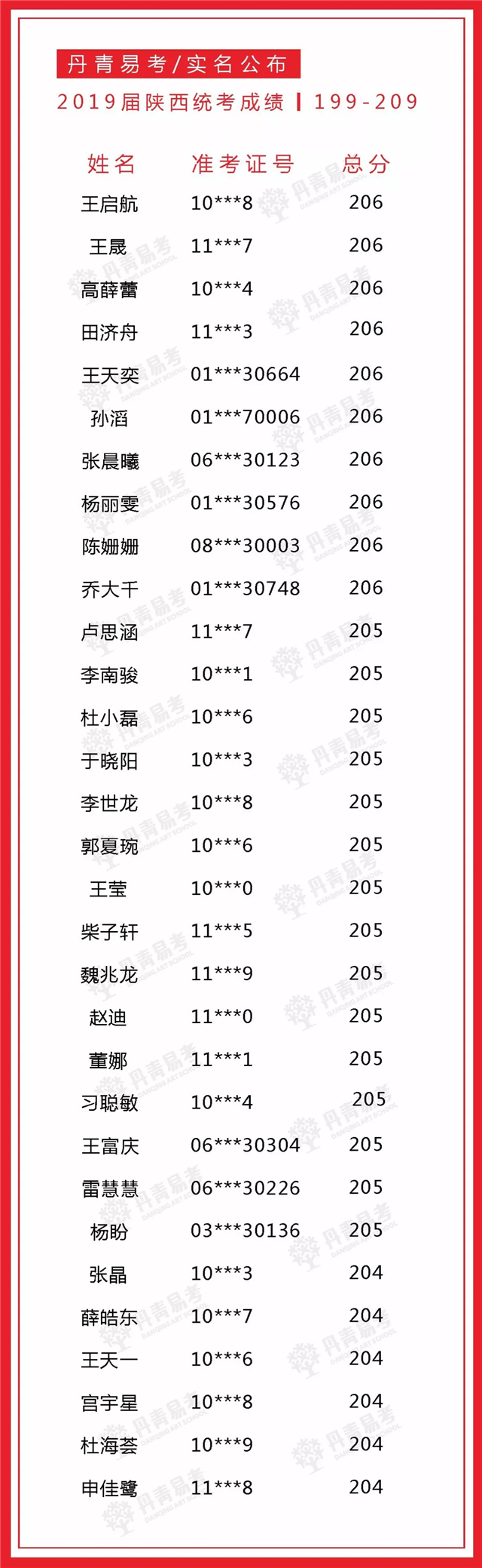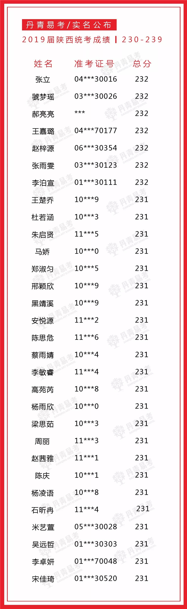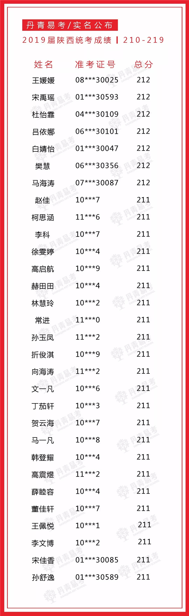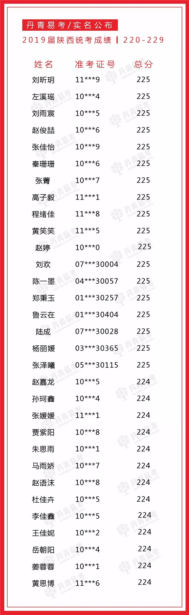 实名公布丹青易考2019届美术统考成绩