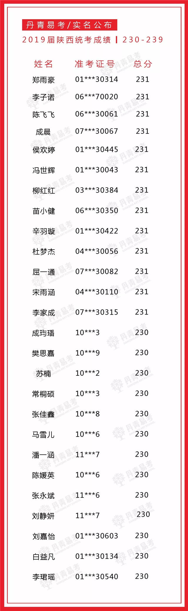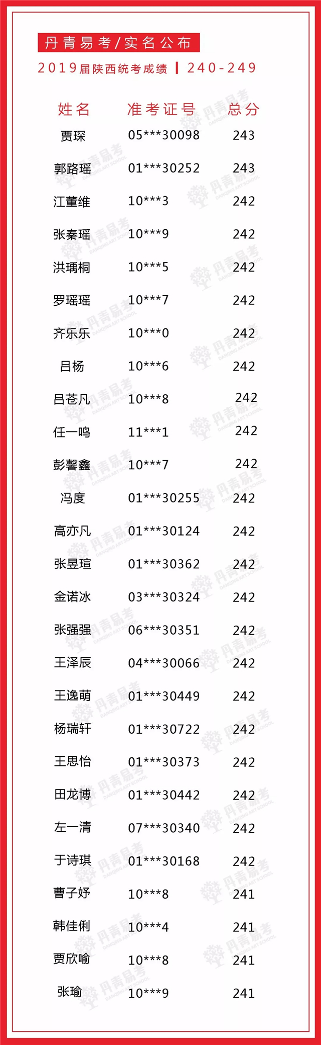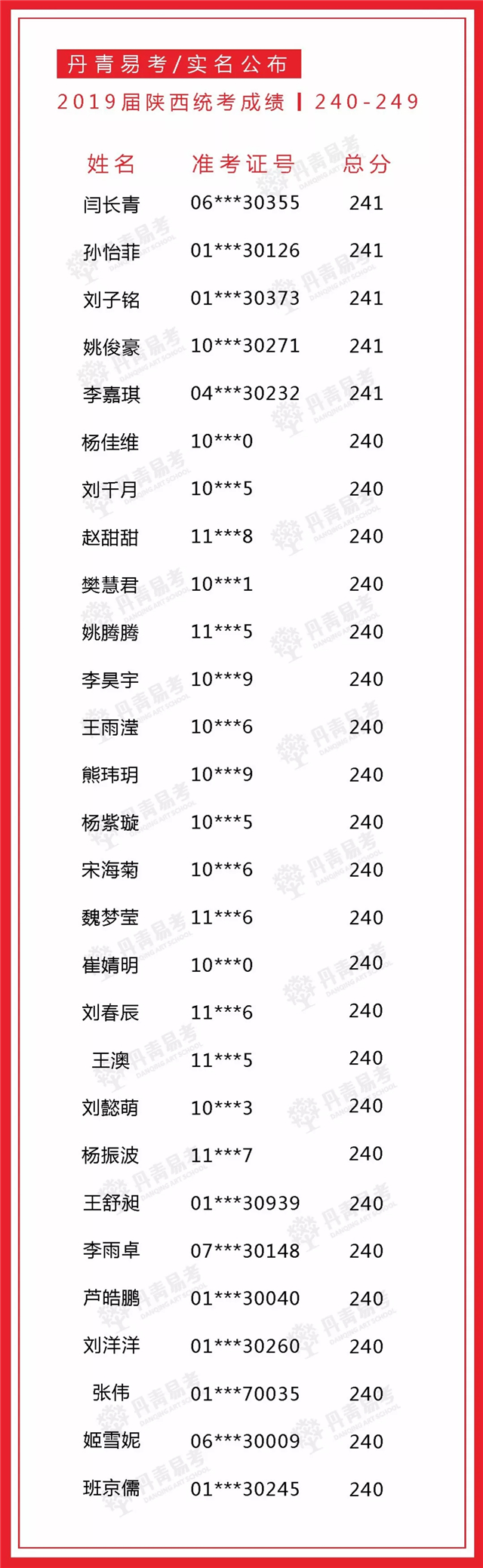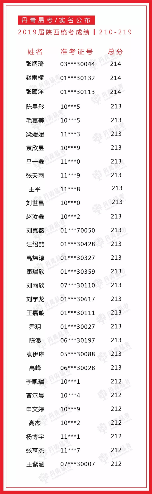 实名公布丹青易考2019届美术统考成绩