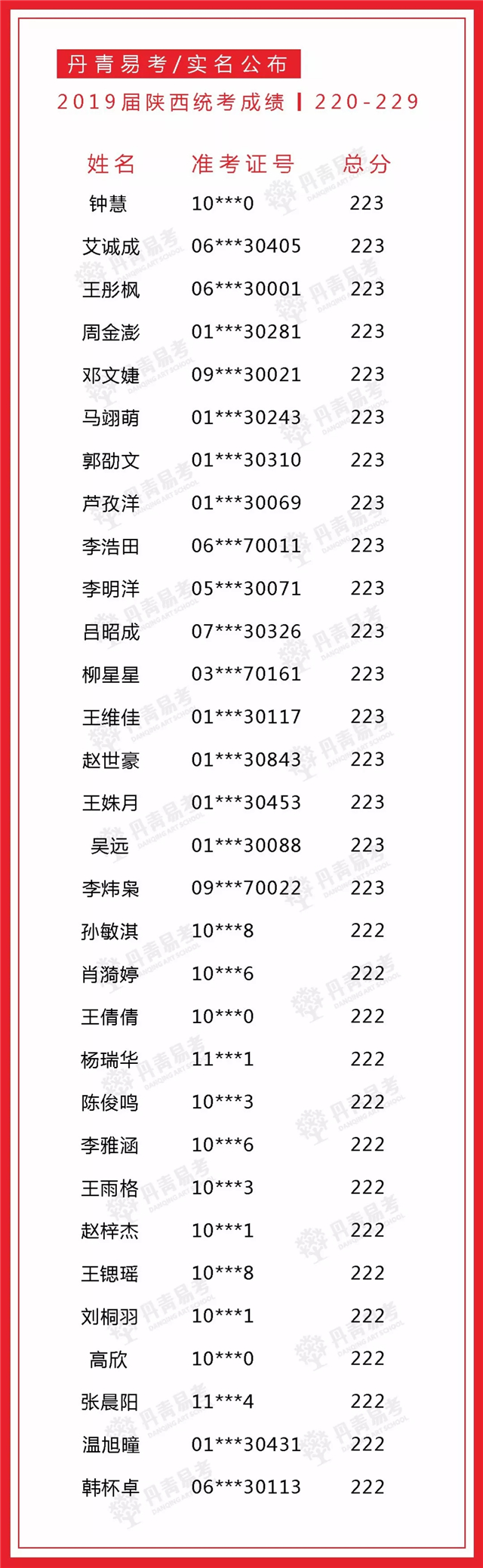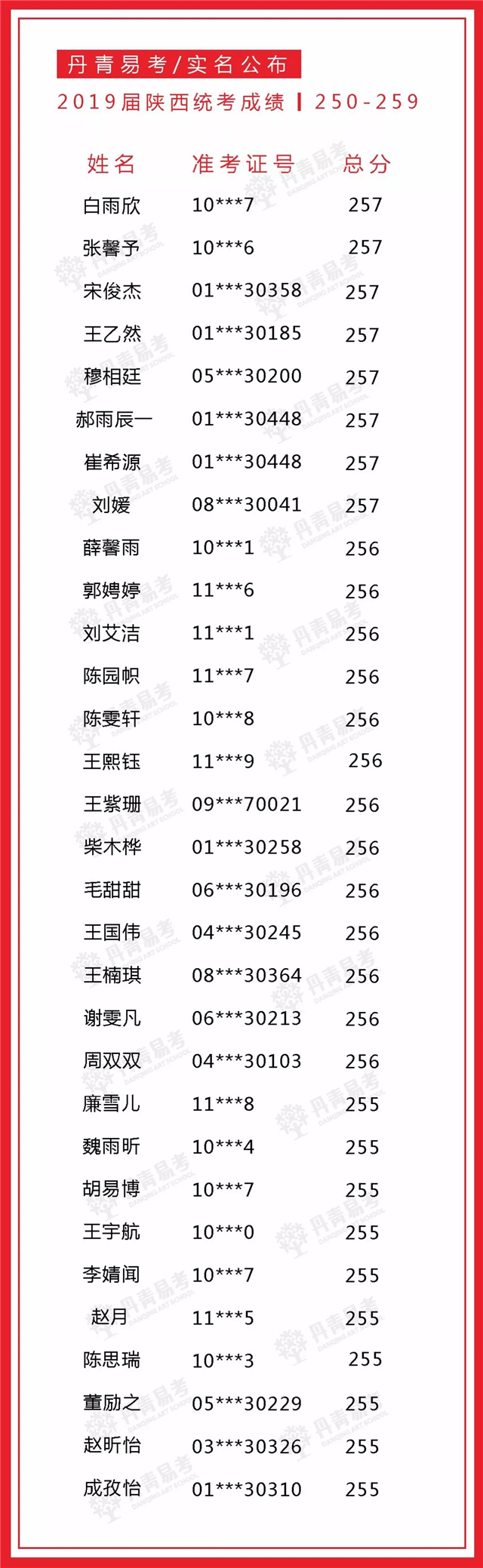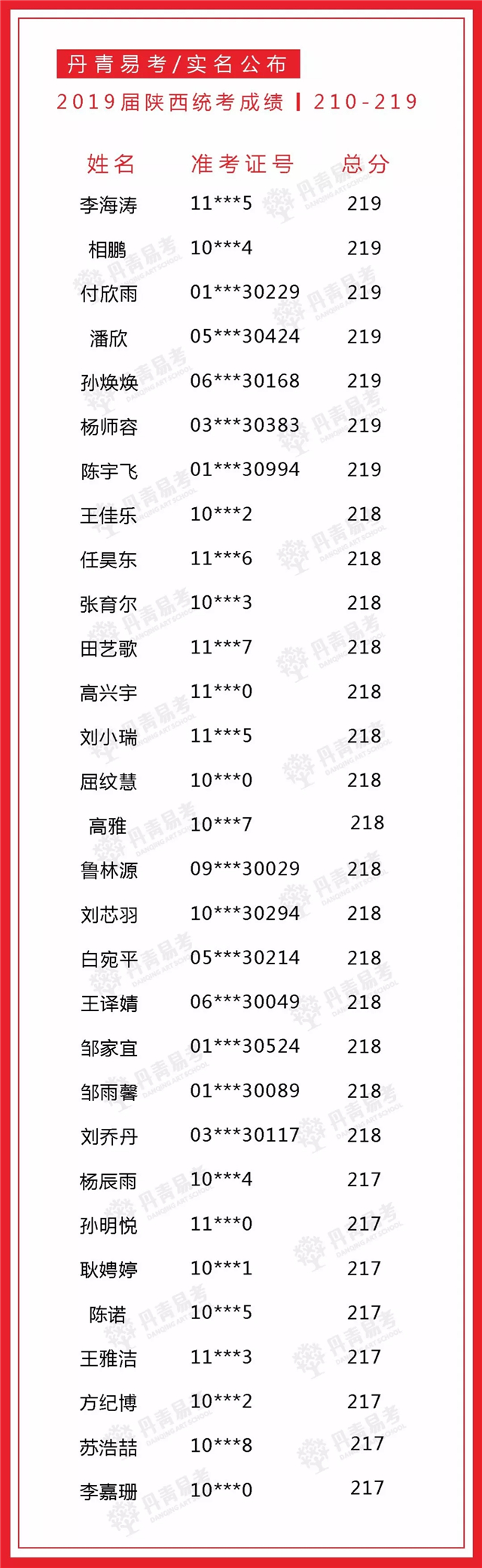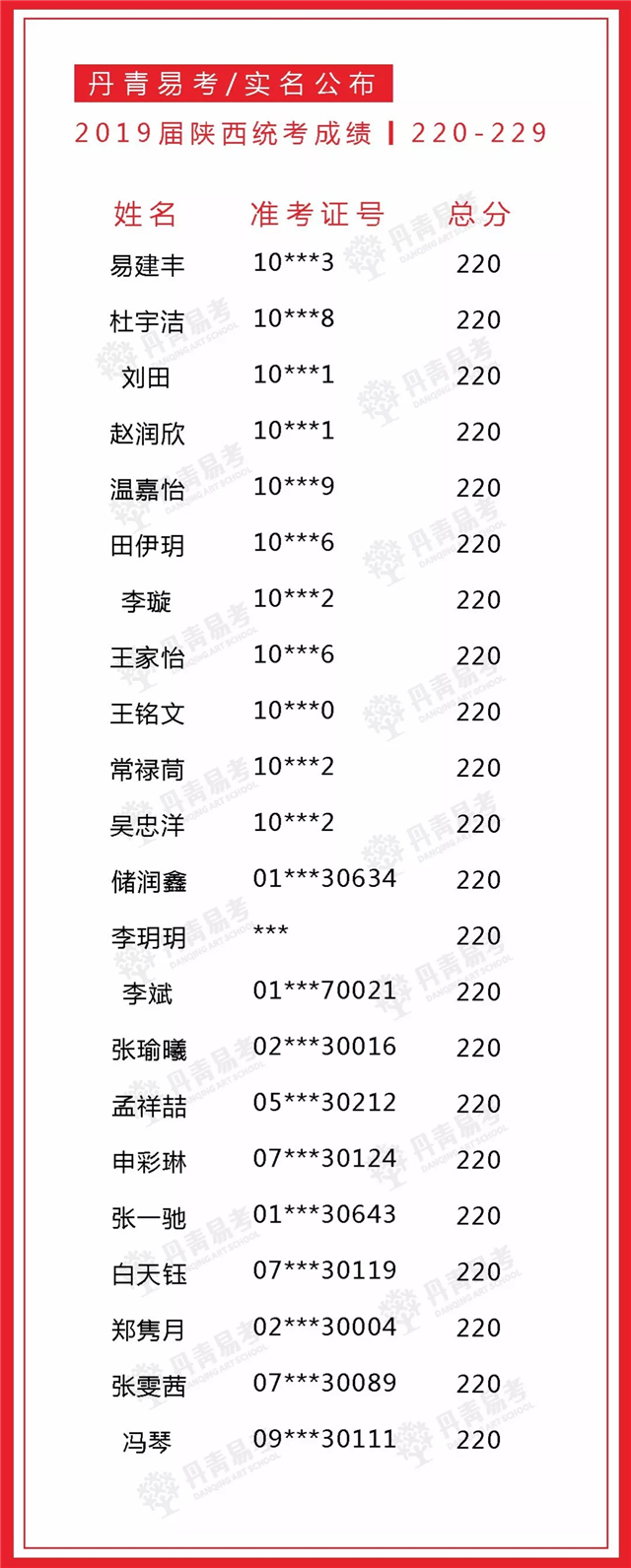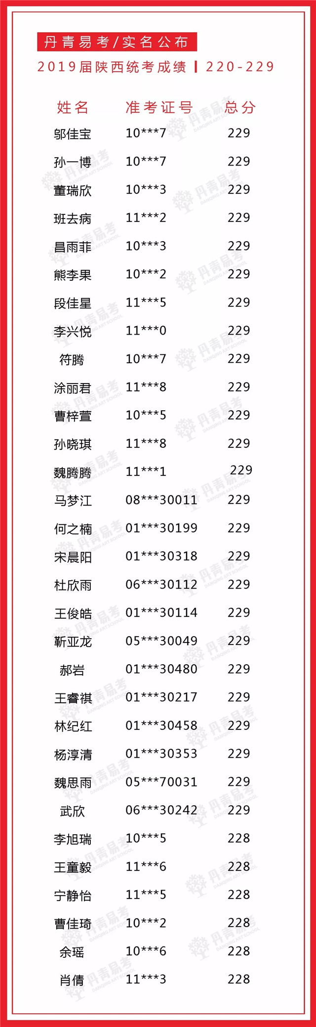 实名公布丹青易考2019届美术统考成绩