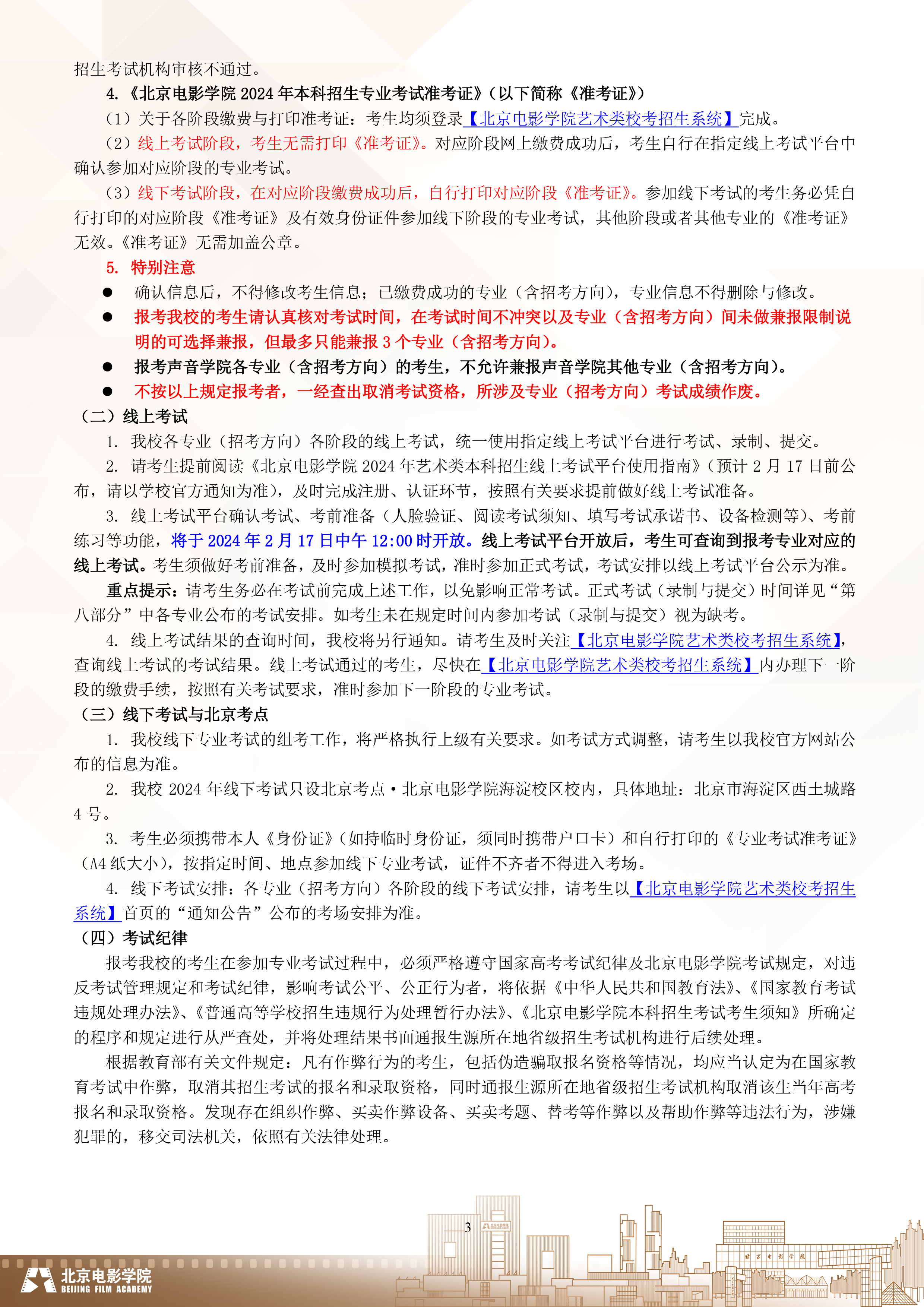 校考资讯|北京电影学院2024年艺术类校考本科招生简章
