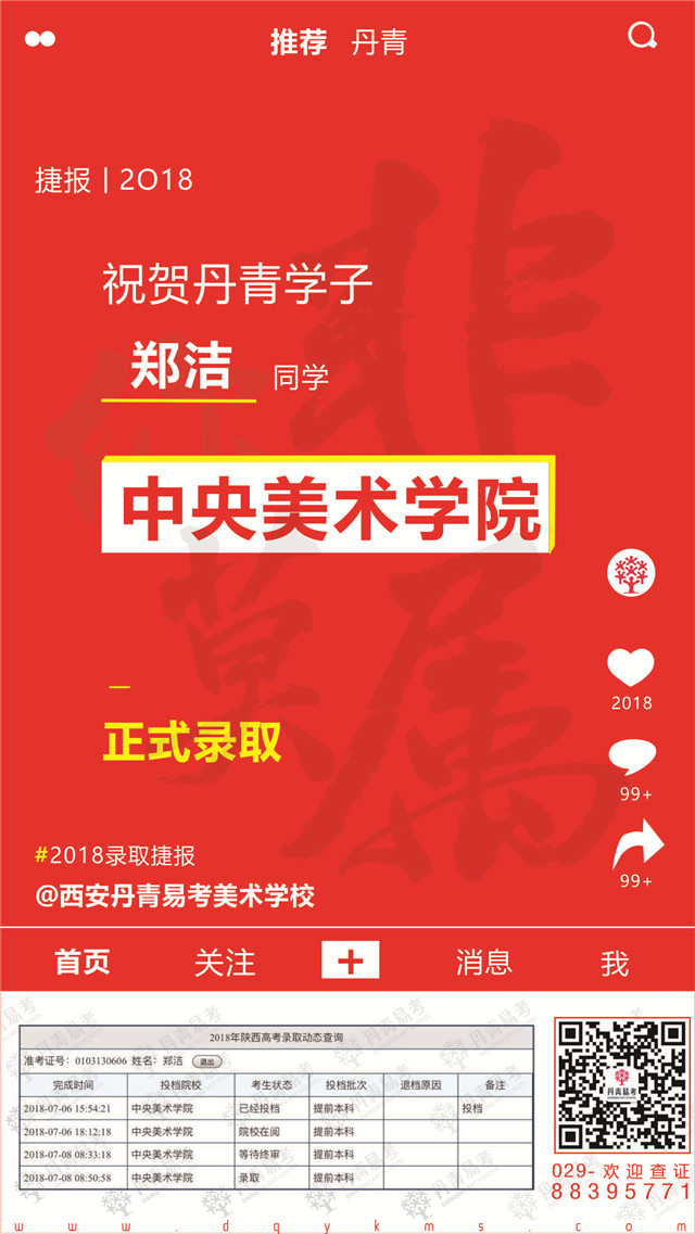 现在的美术培训行业较为混乱,出现有些画室ps学生成绩、录取截图的现象,扰乱美术培训市场,混淆考生及家长的判断。丹青易考作为西北美术教育的品牌机构作出表率,以下所公示录取榜单均真实,有效,若您对我们公示的榜单有异议,欢迎查证!