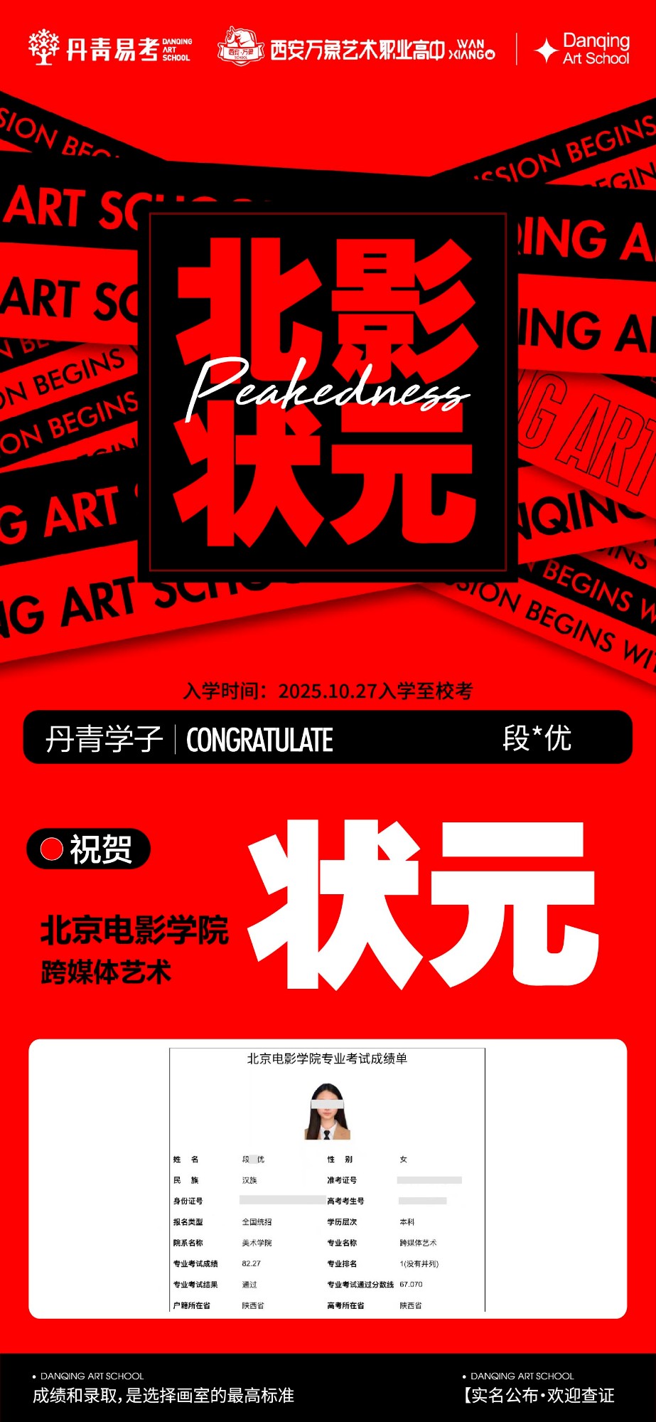 北影放榜,丹青封神 | 丹青易考斩获北京电影学院跨媒体艺术专业全国状元!