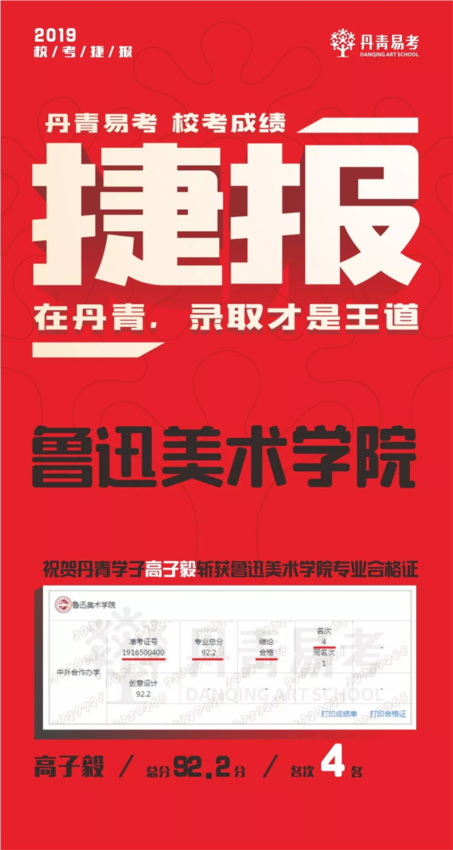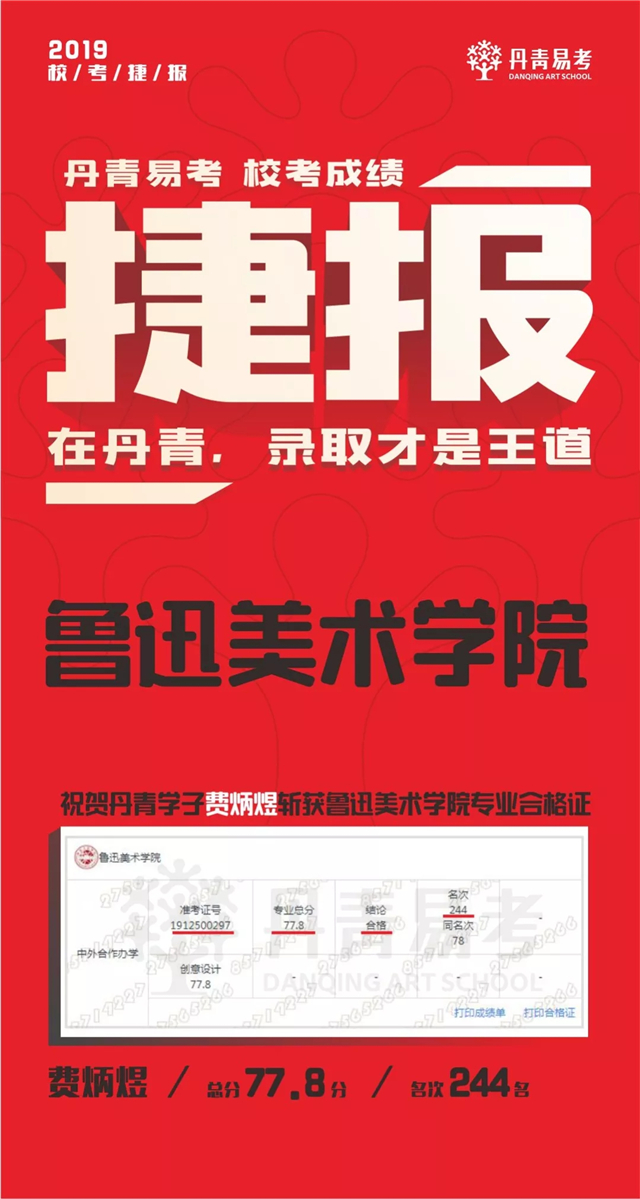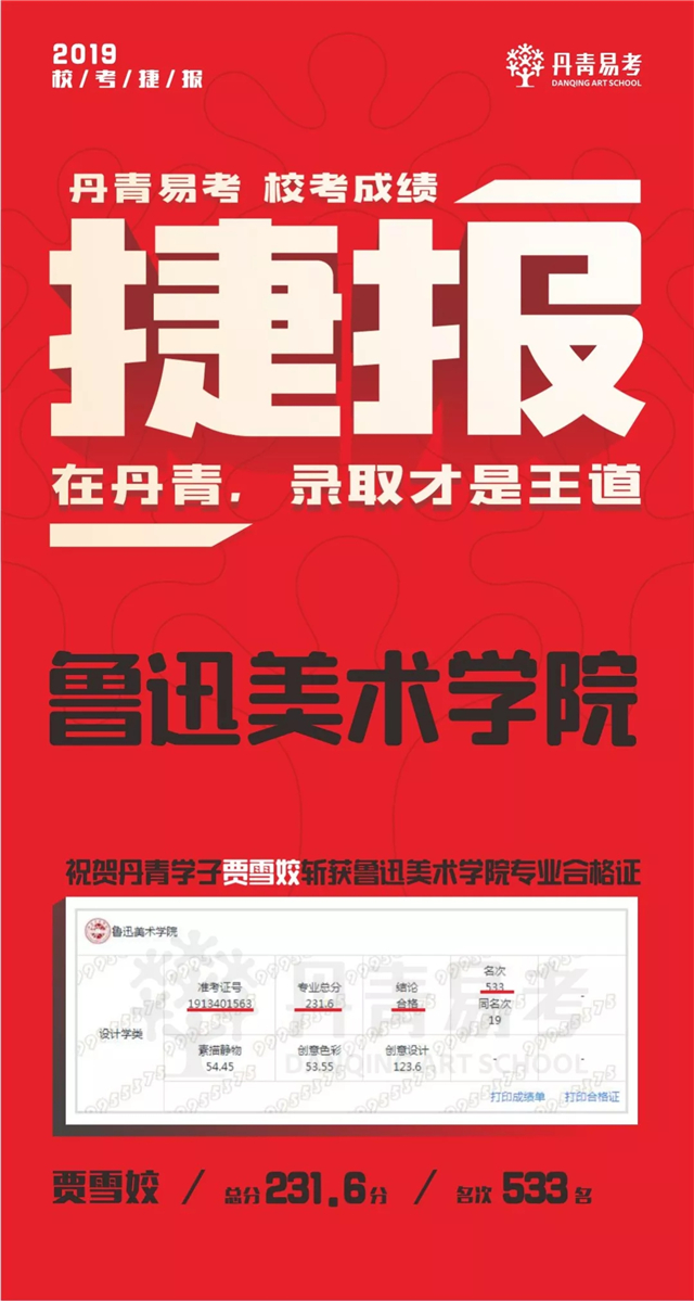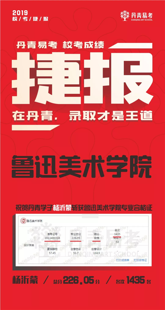 2019丹青学子斩获鲁迅美术学院8张专业录取合格证