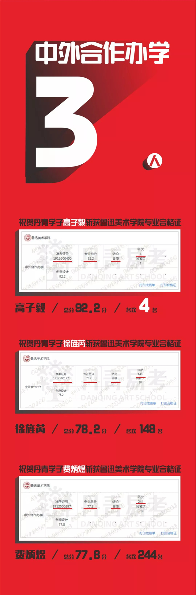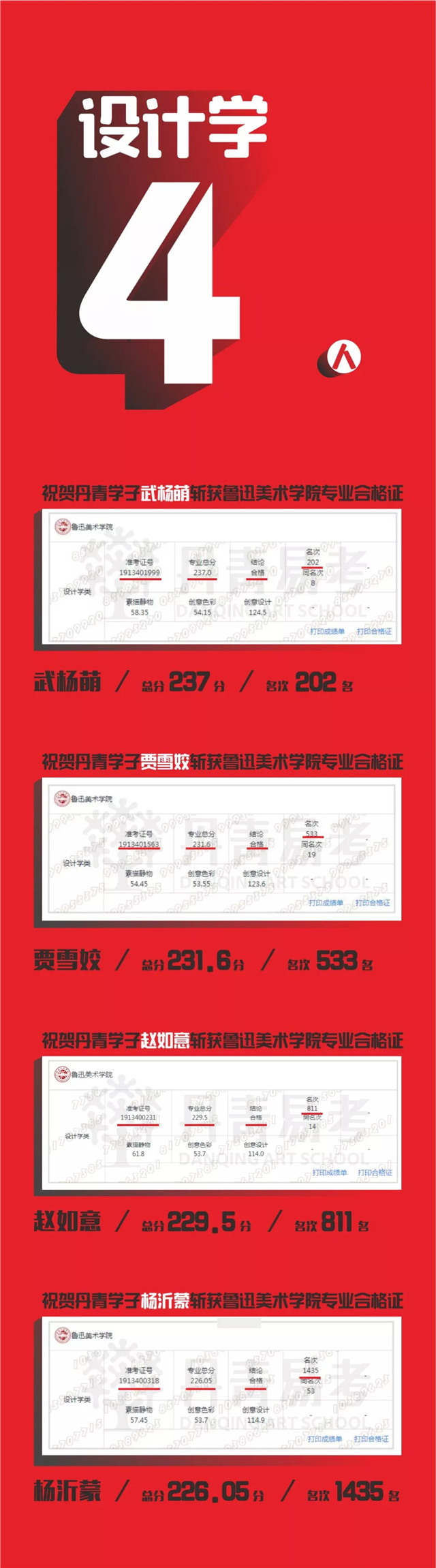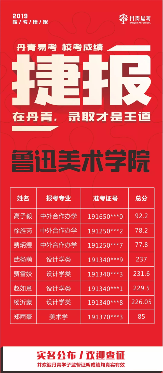 2019丹青学子斩获鲁迅美术学院8张专业录取合格证