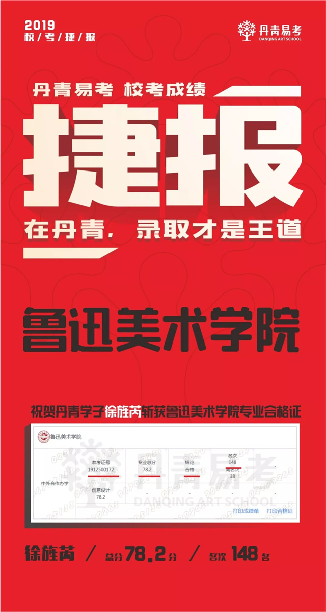 祝贺徐旌芮斩获鲁迅美术学院专业录取合格证