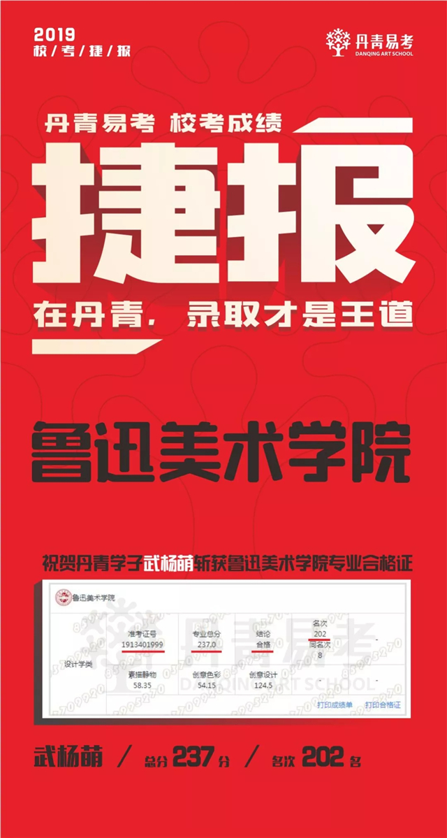 祝贺武杨萌斩获鲁迅美术学院专业录取合格证
