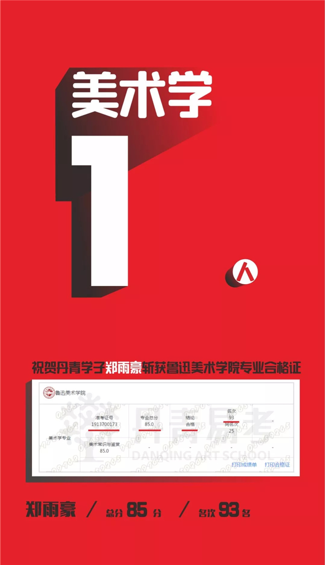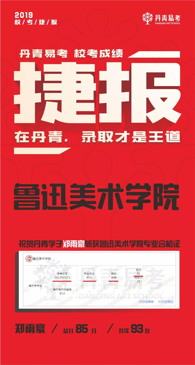 祝贺郑雨豪斩获鲁迅美术学院专业录取合格证