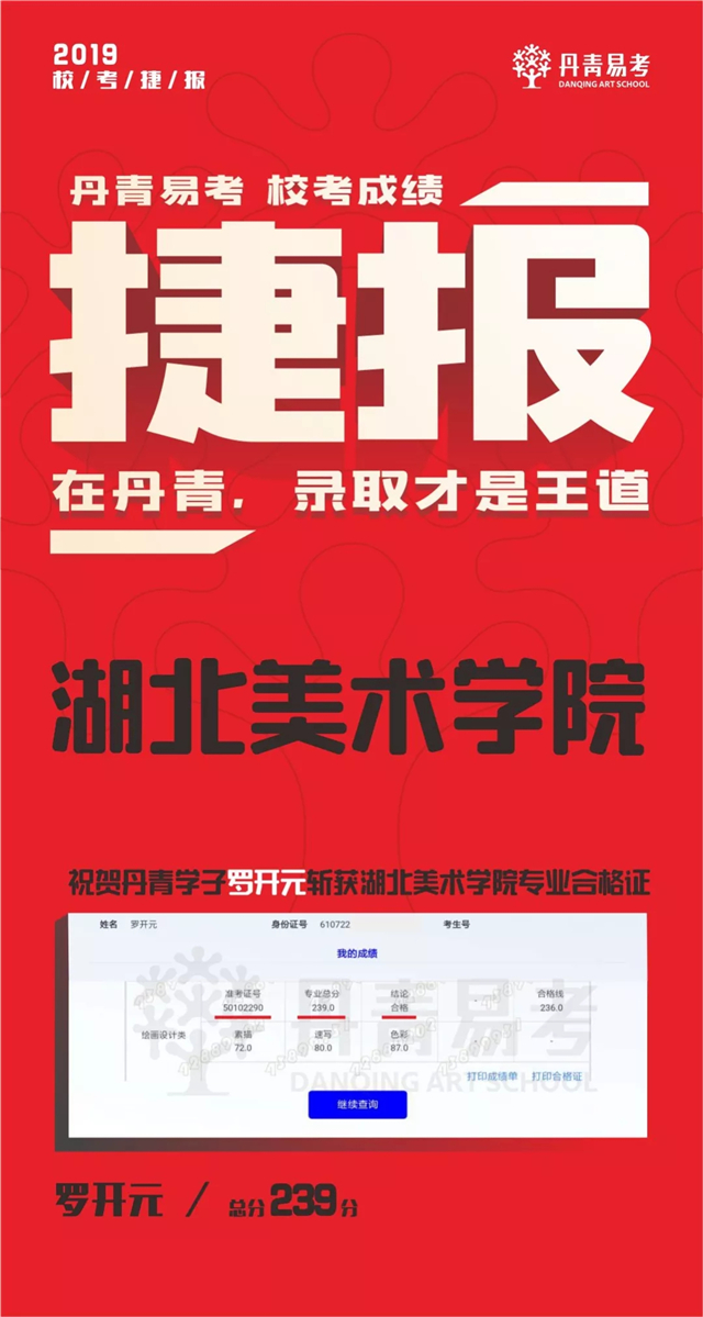祝贺罗开元斩获湖北美术学院专业录取合格证