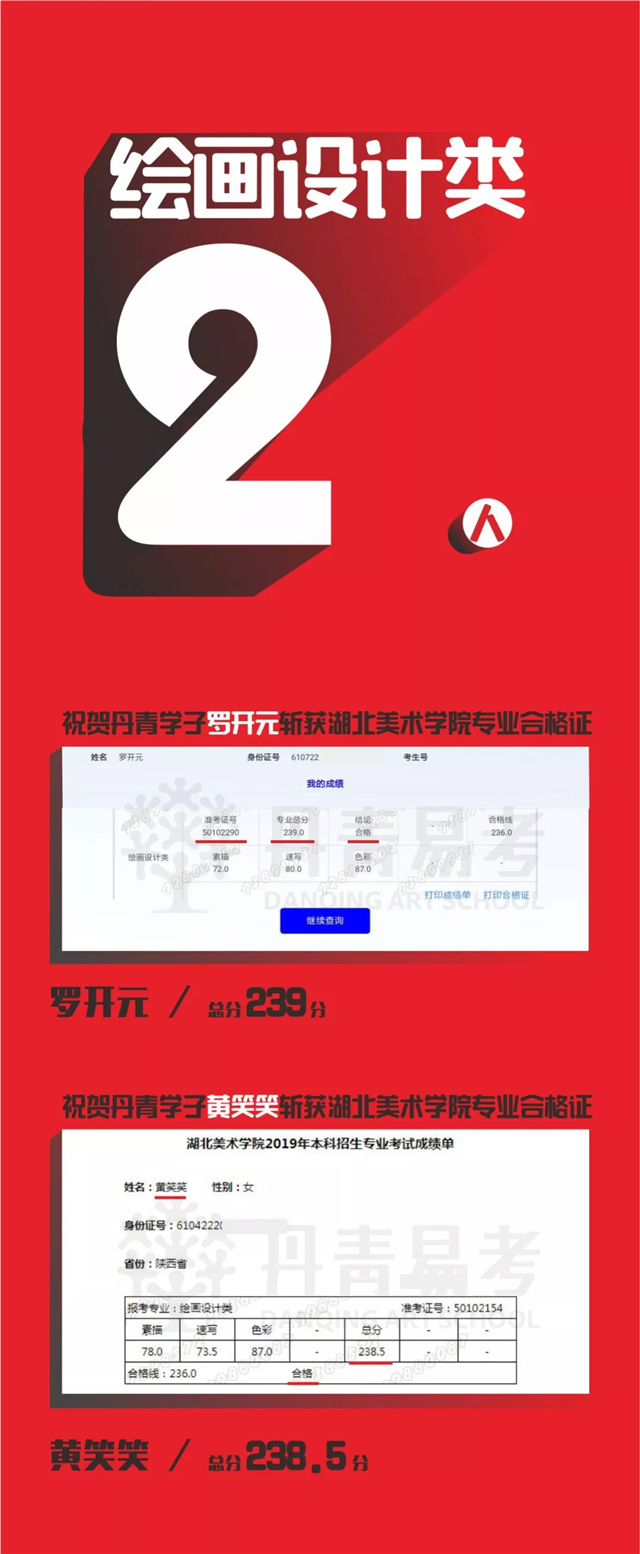 2019丹青学子斩获湖北美术学院2张专业录取合格证