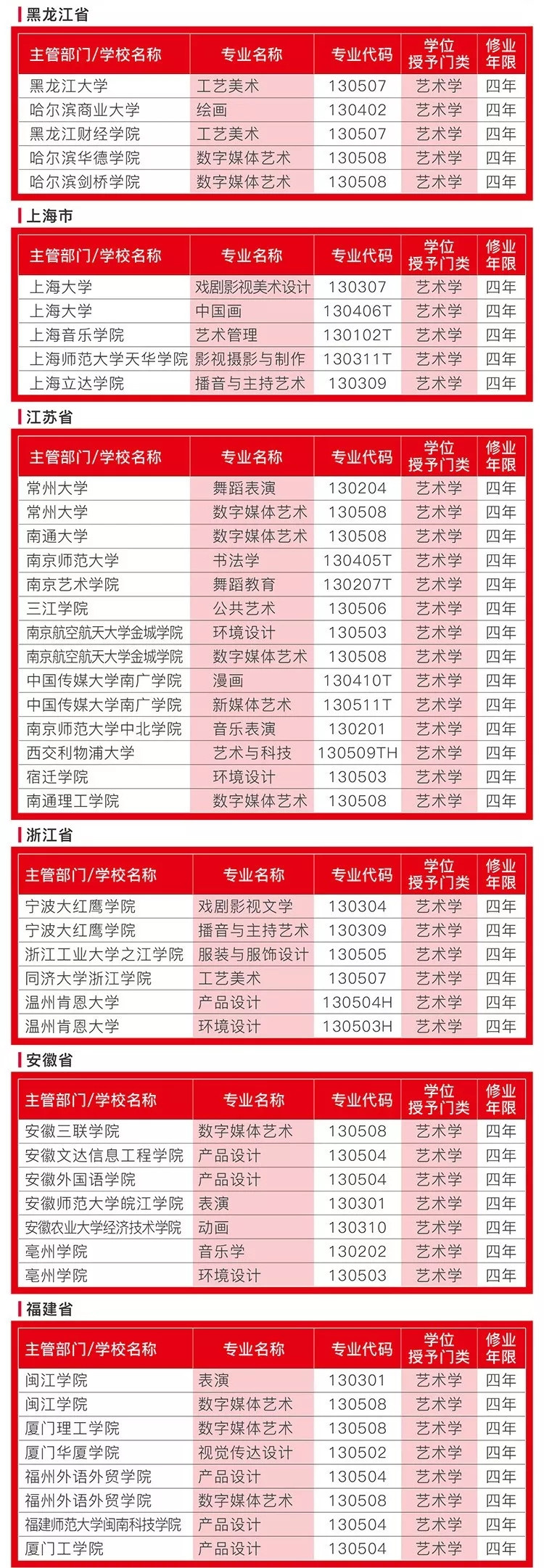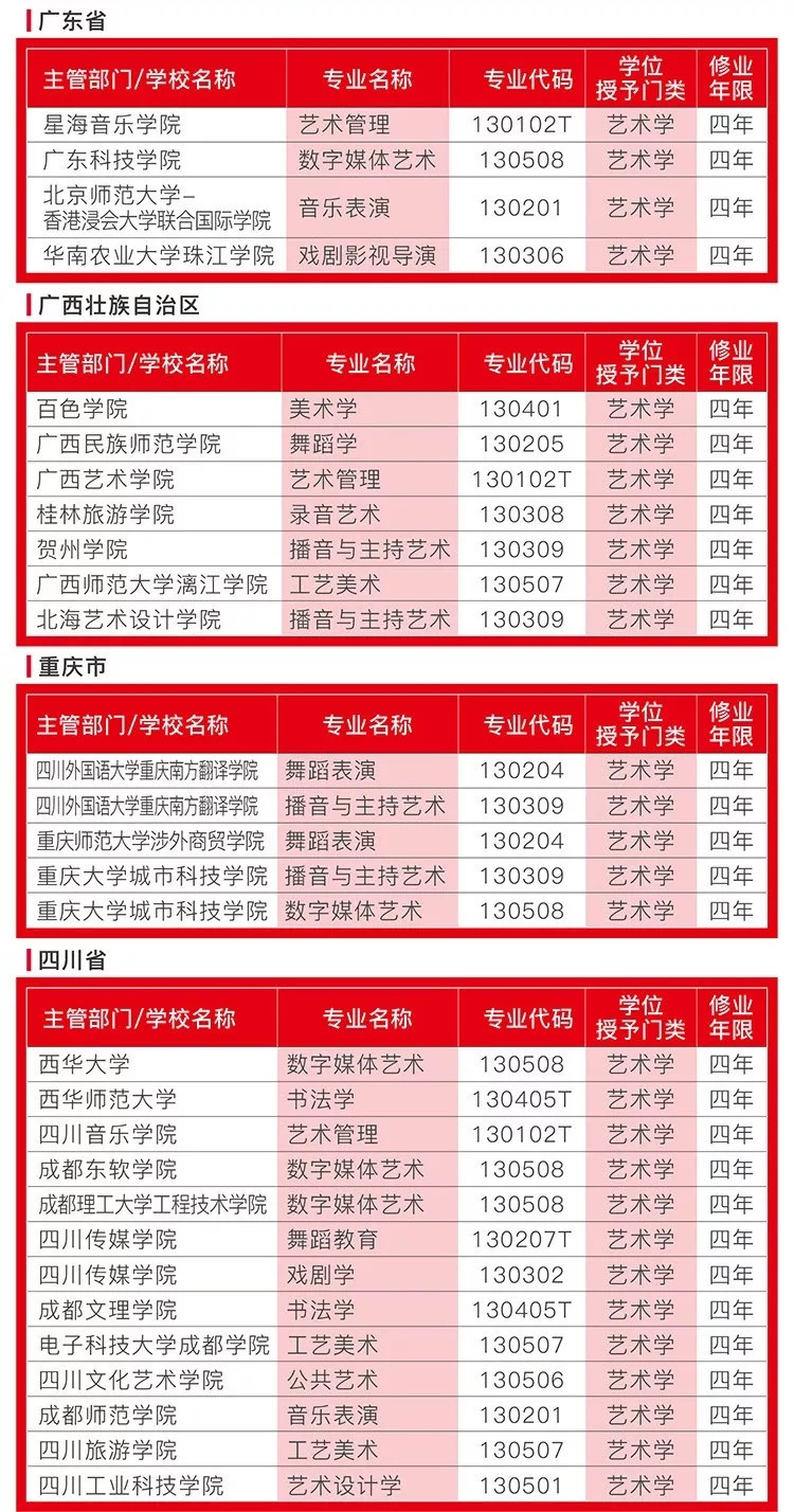 3月29日,教育部官网正式发布《教育部关于公布2018年度普通高等学校本科专业备案和审批结果的通知》,其中新增备案本科专业中艺术类相关专业名单如下(新增专业预计于2019年或2020年开始招生):